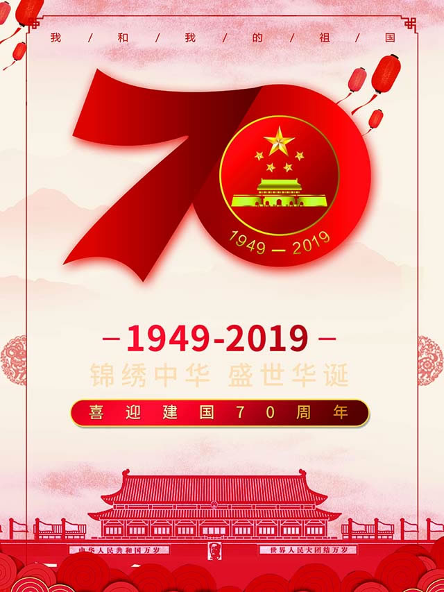2019年10月1日祖國(guó)成立70周年,河北宏發(fā)機(jī)械有限公司全體成員祝福祖國(guó)的明天,天更藍(lán)、山更綠、水更清,經(jīng)濟(jì)更繁榮、人民更幸福、國(guó)力更強(qiáng)盛。